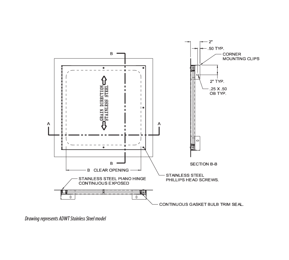 The Acudor ADWT – Steel is an Air and Watertight steel access door. The ADWT is ideal for use in laboratories, clean rooms, operating rooms, and additional appli