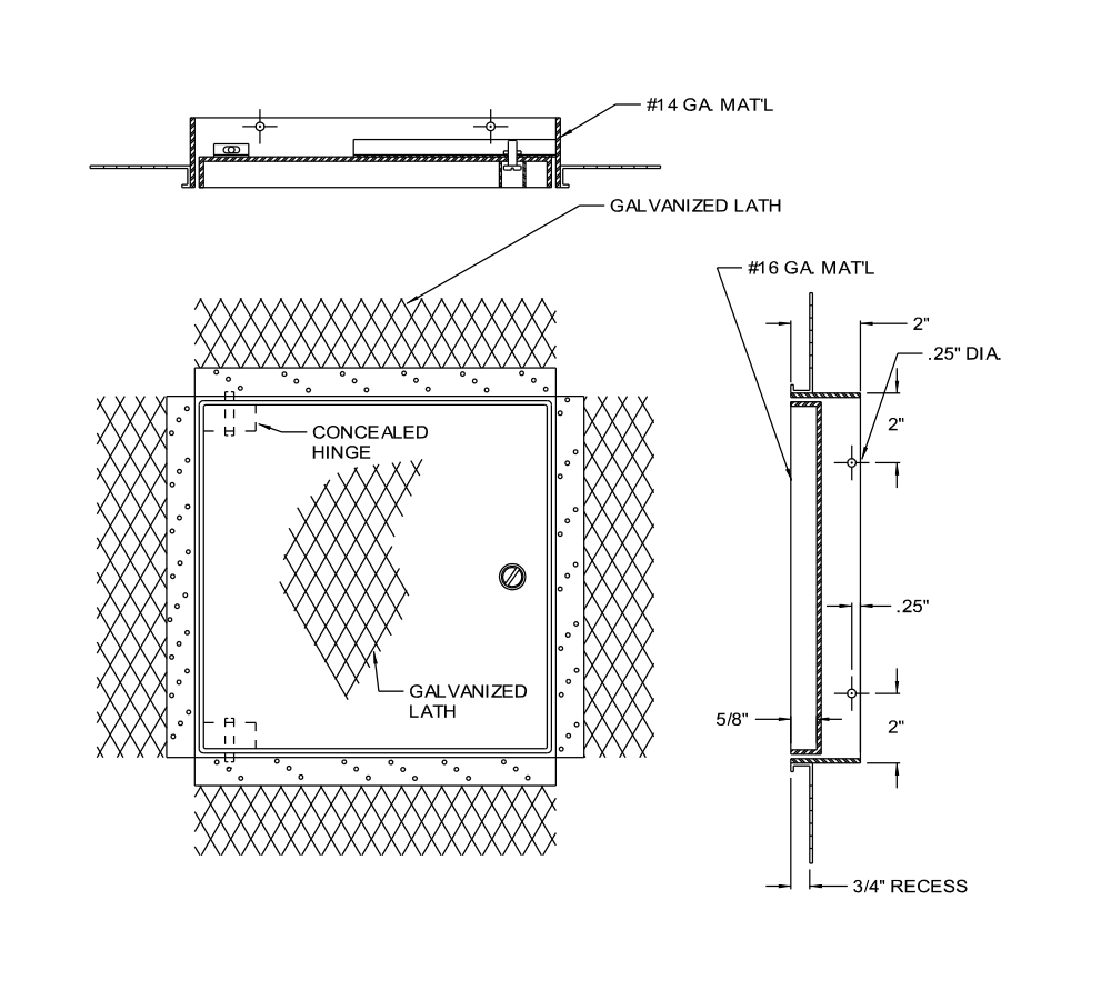 Door: 16 gauge recessed 5/8" lined with self-furring galvanized lath