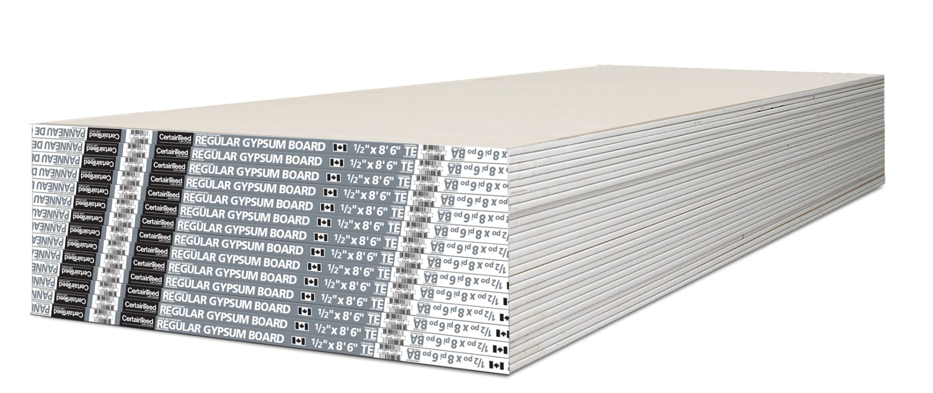 | Certainteed Regular Drywall | 1/2" | 4' x 8' 6" |