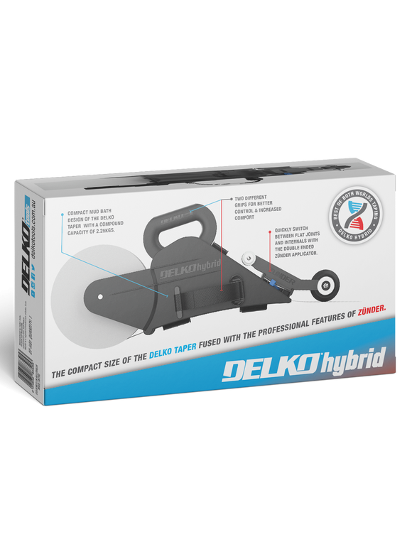 - Change between flat joints and internal corners with a flick of your wrist using the patented double ended Delko® Applicator Attachment.
