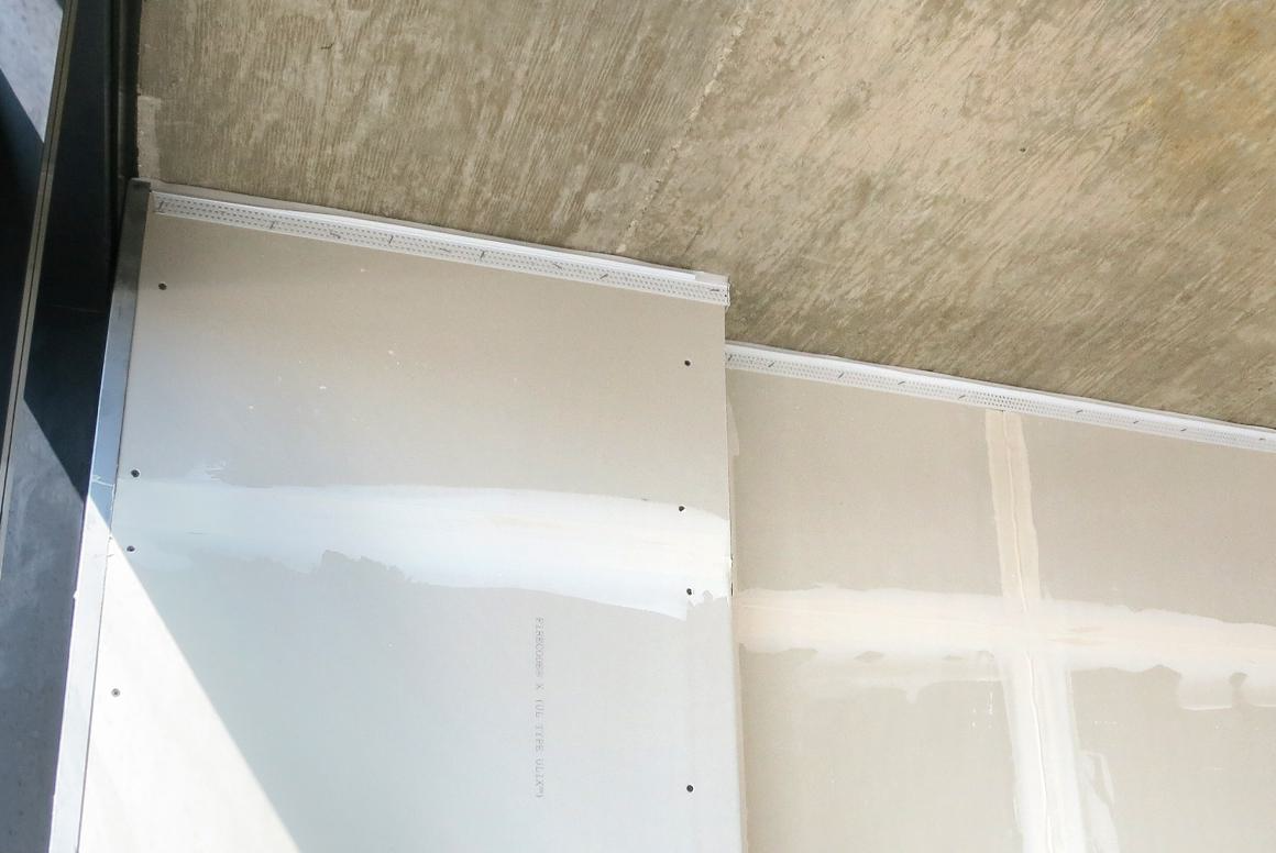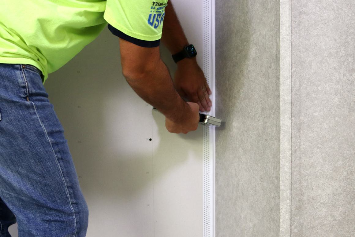 This simple solution prevents inside corner cracking when installed against a ceiling or concrete deck that may be subject to movement, to be used alongside backing materials in the head-of-wall gap for a code-compliant assembly. Its flexible gasket compresses and expands, providing protection for up to ½” of deflection, while its tear-off strip leaves a clean finished edge.