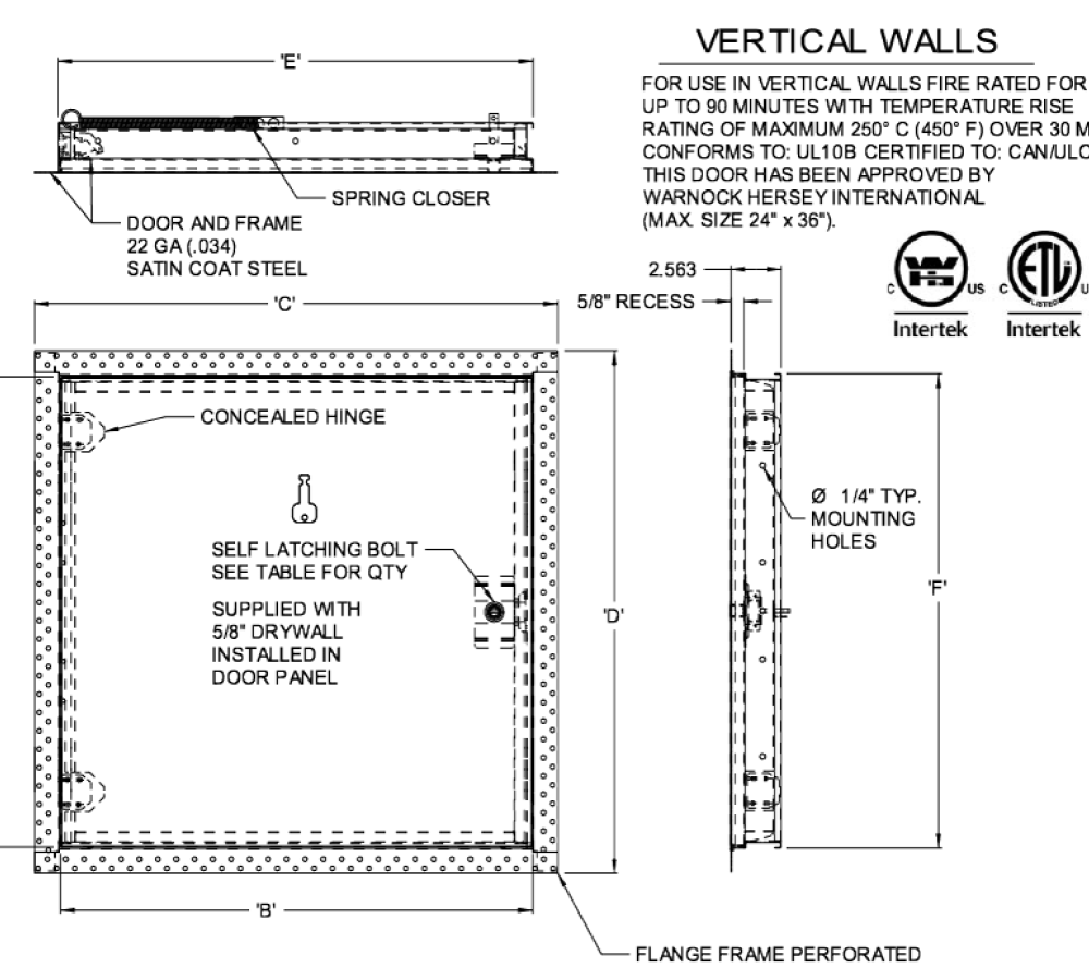 The Acudor FW-5015 is a fire-rated access door, recessed for drywall walls.