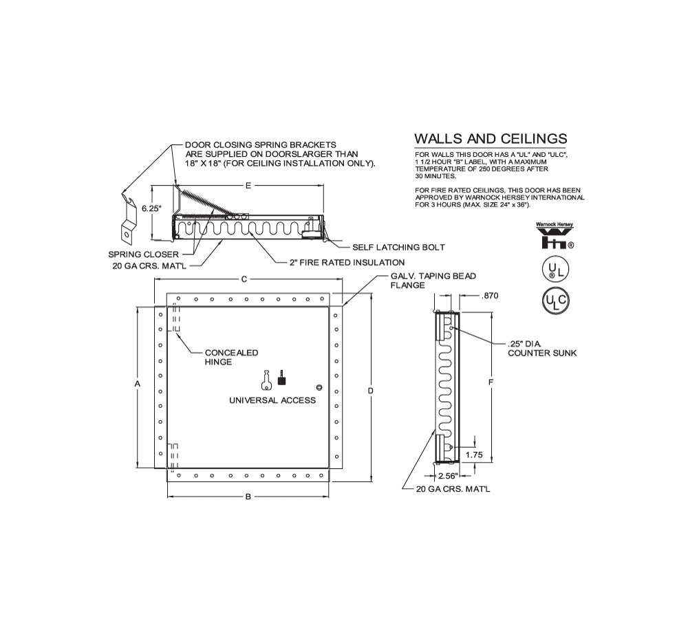 Fire Rating (Walls) UL — 1-1/2 hour "B" label. ULC — 2 hour "B" label. Max size: 36 x 48.