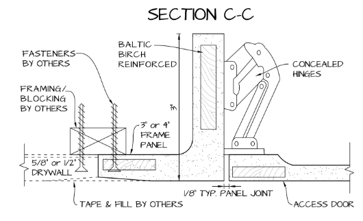 Castle Panels & Doors are available in over 700 sizes to accommodate small to large access openings, Castle Access Panels & Doors meets Class A flame spread rating in accordance with: