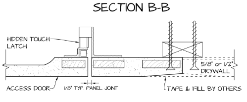Our innovative Castle TL (Touch Latch) GFRG Access Panel blends seamlessly into wall or ceiling. Consisting of a frame and panel door it simply opens with our Pushing firmly in the corner in an upward motion to disengage the European Touch Latch hardware from the back side of the panel door. Once installed and finished to match the existing surround surface, a clean equal tight seam is all that remains visible.